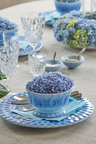 Que vous dressiez la table pour un dîner de Noël hivernal, un brunch printanier ou une étape festive, les hortensias apportent toujours une touche supplémentaire. Leur floraison généreuse et élégante, fraîche ou séchée, rend chaque décor unique.